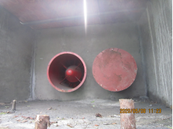 礦山按照設計采用機械抽出式通風系統,在PD450-2回風硐口安裝2FBCZ№7.6/7.5型防爆軸流式風機,其中一臺作為備用;風機參數:風量5.58.0m3/s,全壓350800Pa,電機功率7.5kW;該風機風量及風壓能夠滿足設計及井下通風要求。井下+400m中段布置一處掘進工作面,配備FBY5.5礦用局部通風機及φ400mm礦用阻燃風筒加強通風。