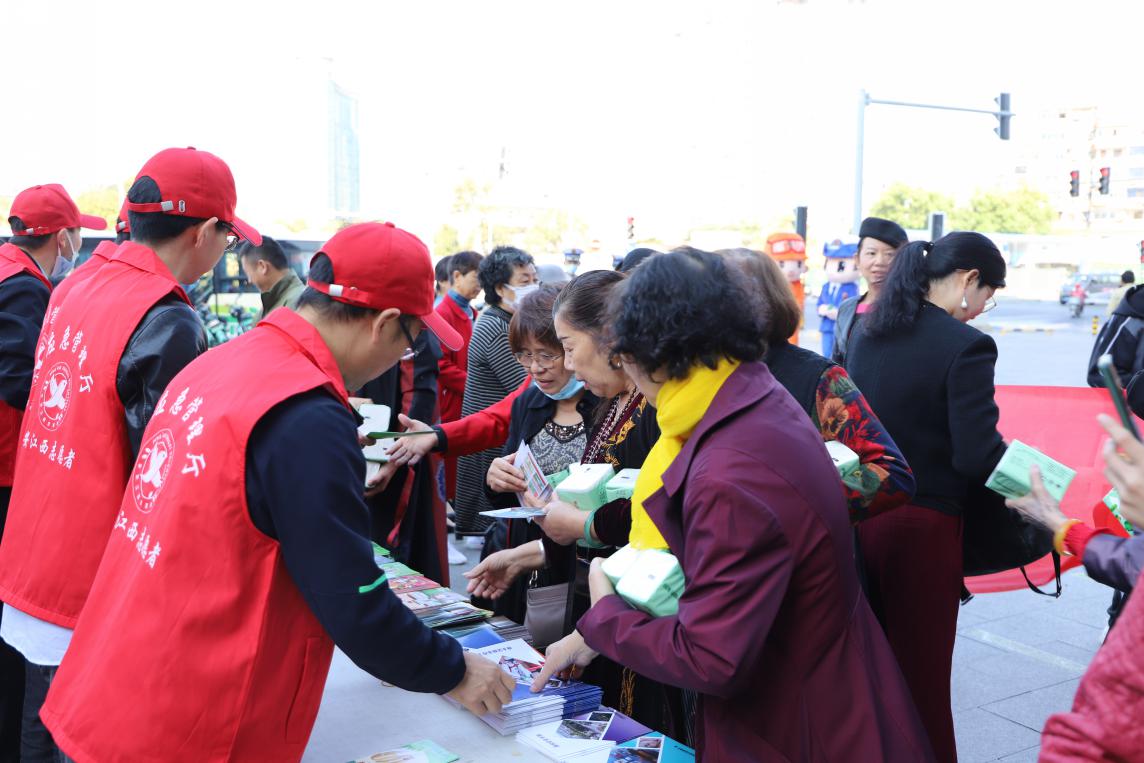 志愿者們向廣大市民宣講《江西省森林防火條例》、防災減災等相關知識,分發《家庭安全手冊》、森林防火宣傳海報等宣傳物資。