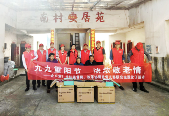 為進一步弘揚中華民族敬老愛老的傳統美德,10月11日,廳辦公室、執法監督局、改革協調處黨支部赴省廳鄉村振興駐點幫扶村——靖安縣南村村,開展“九九重陽節,濃濃敬老情”聯合主題黨日活動。